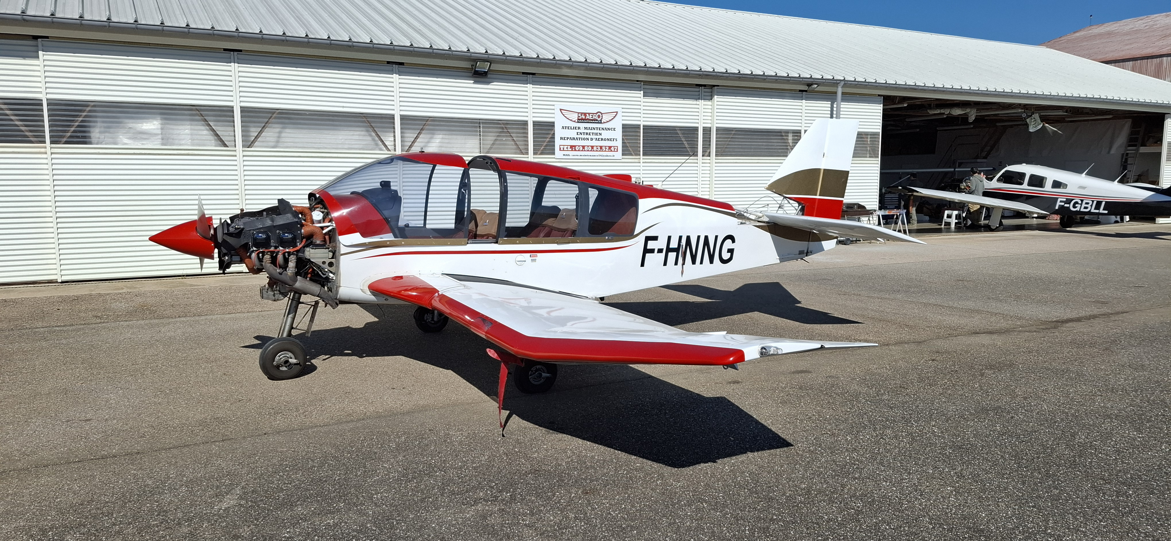 The next day it was a short drive to the airport to have a look at F-HNNG. The plane was at the maintenance shop to get a 2,000-hour inspection and to do some repairs. They already removed most covers for the inspection and that allowed us to also peek under the hood. They expected that the inspection and repairs would take at least 6 weeks to complete. But after all that work, it would be a very nice option.